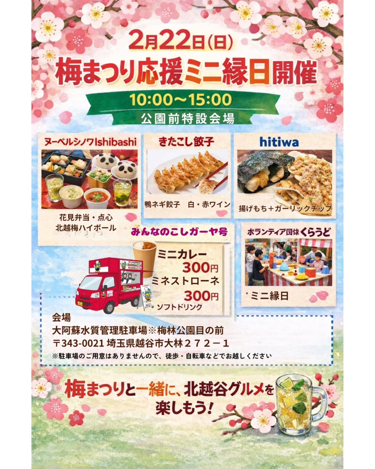 私たち『Ishibashi』は、北越谷駅から徒歩14分、『越谷梅林公園』にほど近い場所に位置しています。