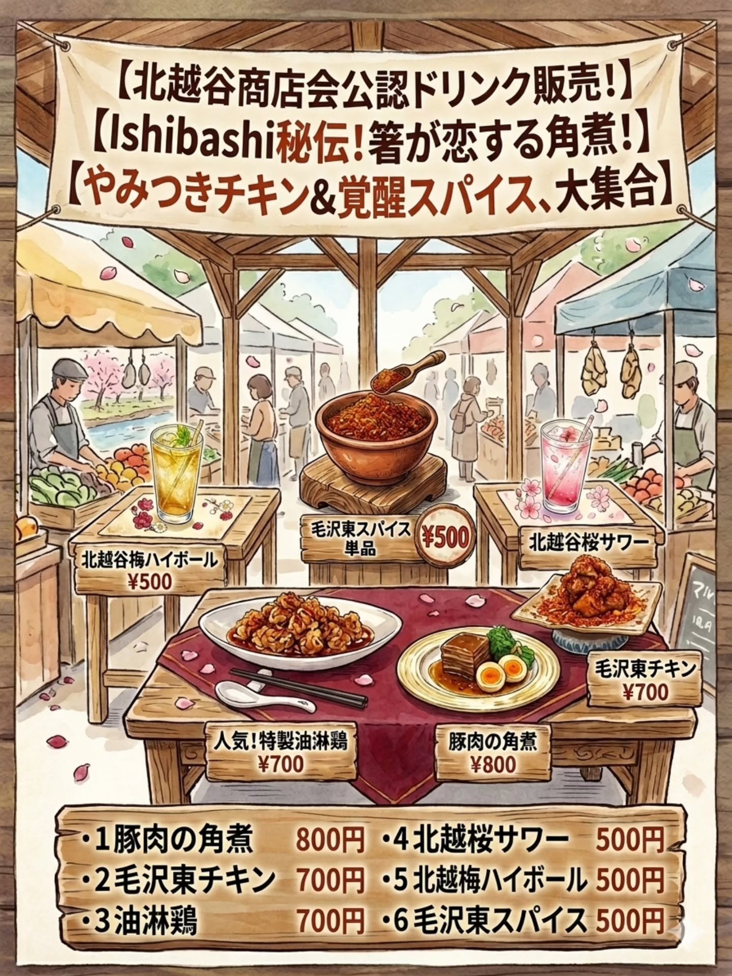 また、北越谷商店会公認の北越桜サワーや北越梅ハイボールを楽しめるのも魅力の一つ。